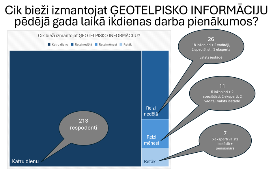 Respondentu pašu vērtējums par ģeotelpiskās informācijas izmantošanas biežumu