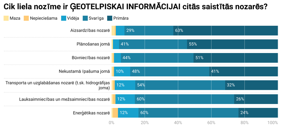 Respondentu vērtējums par ģeotelpiskās informācijas nozīmi citās nozarēs