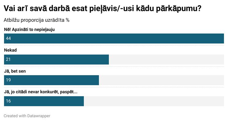 Tāpat aicināts vērtēt savu profesionālo darbu, cik daudz un ko katrs atzīst kā pārkāpumu?