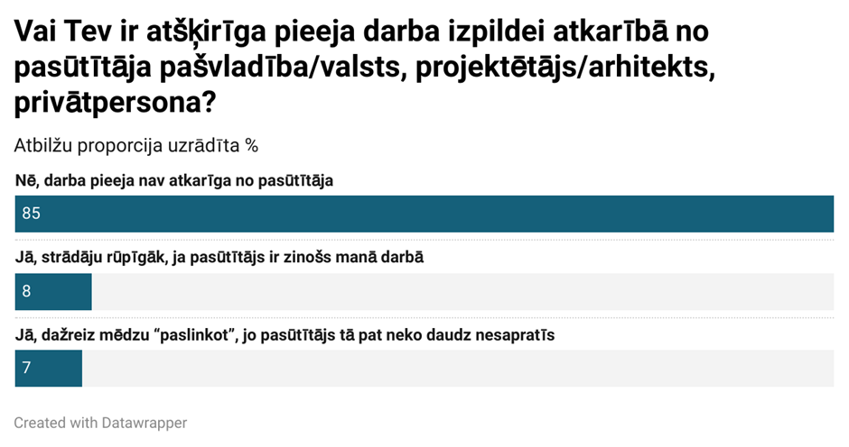 Aptauju rezultāti norāda, ka vairums mērnieku darbu izpilda vienādi neatkarīgi no tā, vai pasūtītājs ir pašvaldība, valsts institūcija, projektētājs vai privātpersona. Tas apliecina, ka svarīgākais ir darba uzdevuma saturs, nevis pasūtītāja kategorija.