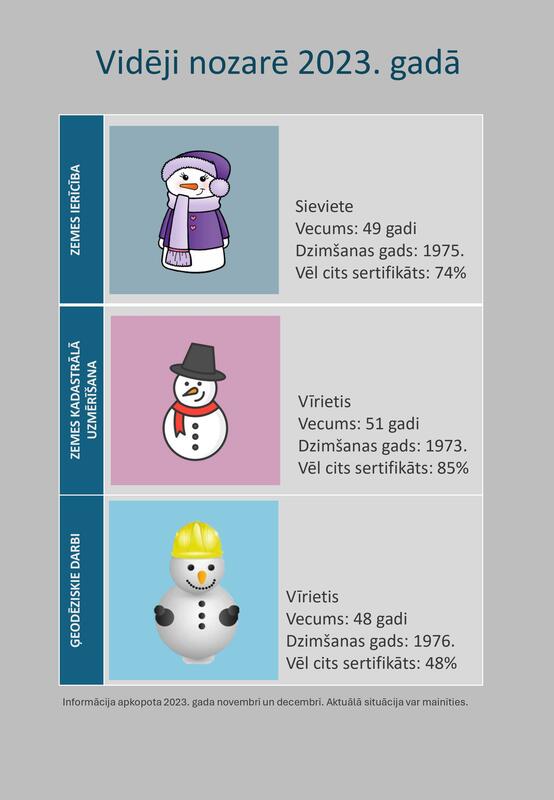 Interesanti, ka LMB Sertifikācijas centrā no kopumā 135 zemes ierīcības darbu sertifikātiem, 6 personām ir ģeodēzisko darbu sertifikāts, 28 personām ir arī zemes kadastrālās uzmērīšanas darbu sertifikāts, 66 personām ir visu darbības veidu sertifikāti un 35 personām ir tikai zemes ierīcības darbu sertifikāts.